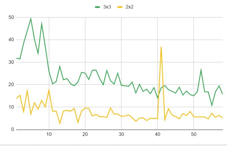As shown in the line graph above, my fifth solves for both events were my worst 3x3 solve of all time at 49.35 seconds, and my best 2x2 solve at my first competition of 6.9 seconds. Likewise, my 13th solve for 2x2 was my best 2x2 solve of all time, and the 13th 3x3 solve was my worst solve at that particular competition. Same with the 55th solves being my best 3x3 solve of all time, and my worst 2x2 solve of that event. All of these are examples of correlation not meaning causation, as there is no logical reason for this behavior outside of it being coincidental.